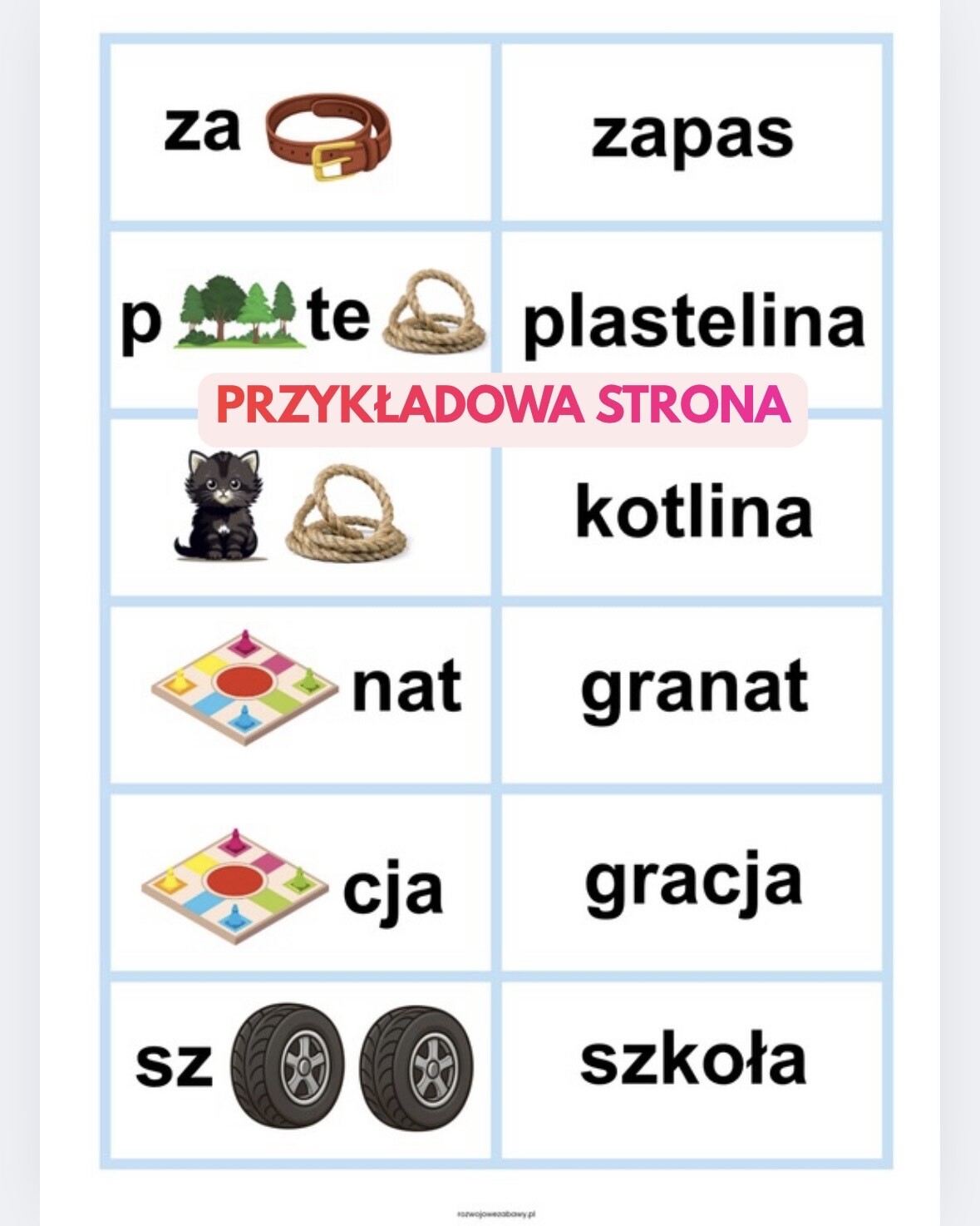 ✔️ Kompletny zestaw - strona tytułowa, dwie strony z opisem oraz 42 strony z rebusami (21 - małe litery, 21 - wielkie litery).